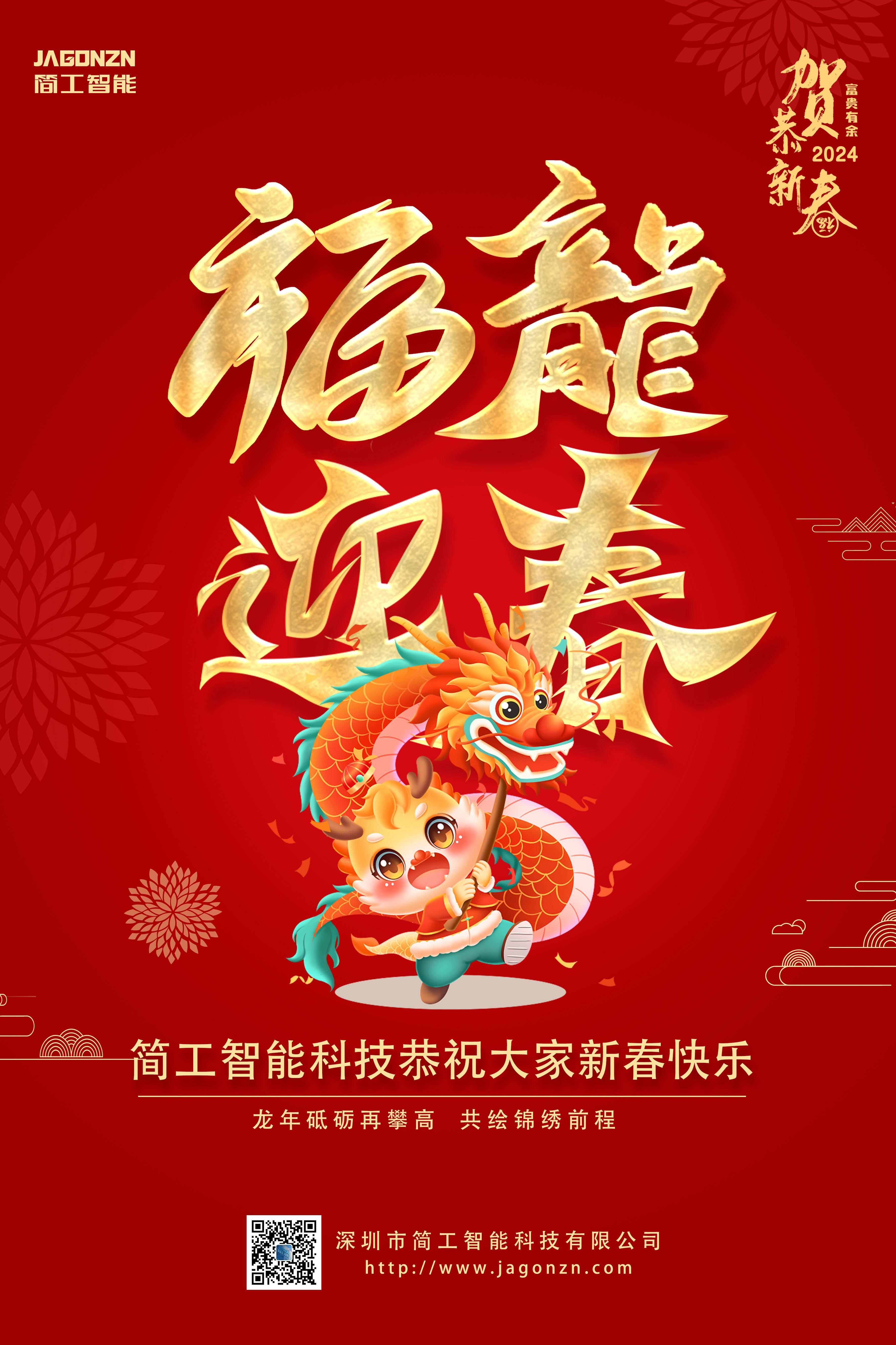 凱歌而行,不以山海為遠;乘勢而上,不以日月為限。滿懷熱忱,無畏前行;簡工智能全體員工恭祝大家新春快樂,福滿龍年!
